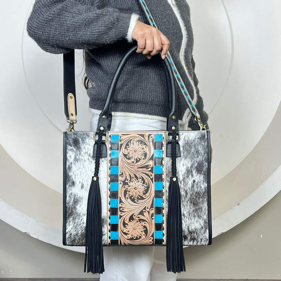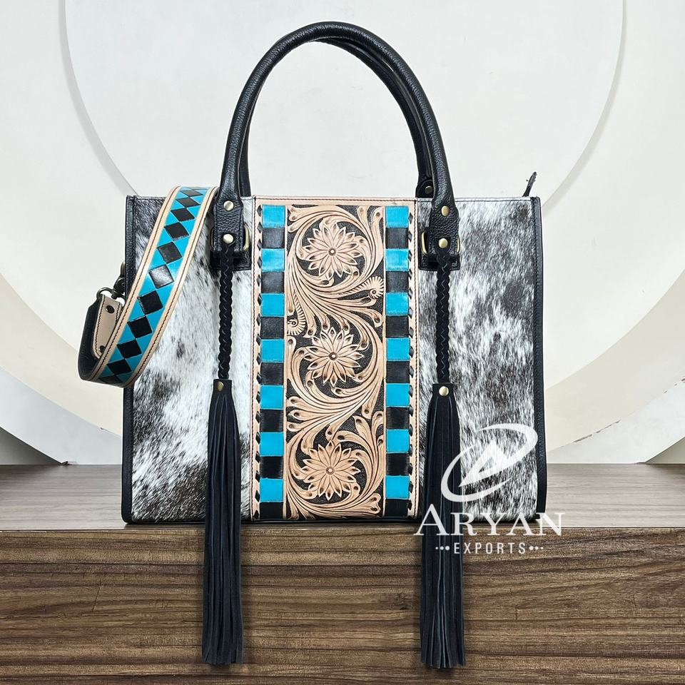 Product Name:Hand Tooled Checkered Leather Tote Bags