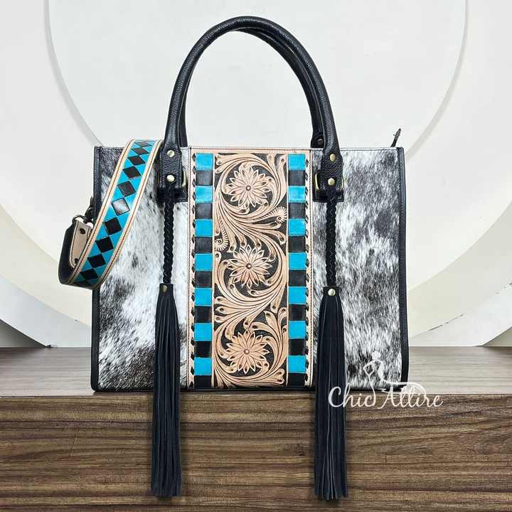 2025 New Wholesale Latest Floral Tooled Checkered Leather Luxury Designer Tote Bag Genuine Cowhide Leather Handbags for Women's