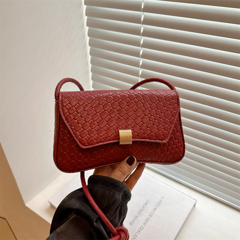 2025 New Woman's Sling Bags Woven PU Leather Flap Underarm Bags Fashion Lady's Handbags with Lock