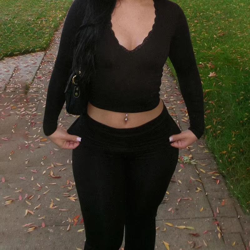 2025 New Women Casual Solid Outfits Elegant Loungewear V Neck Crop Top Trending Women Clothing Two Piece Pants Set