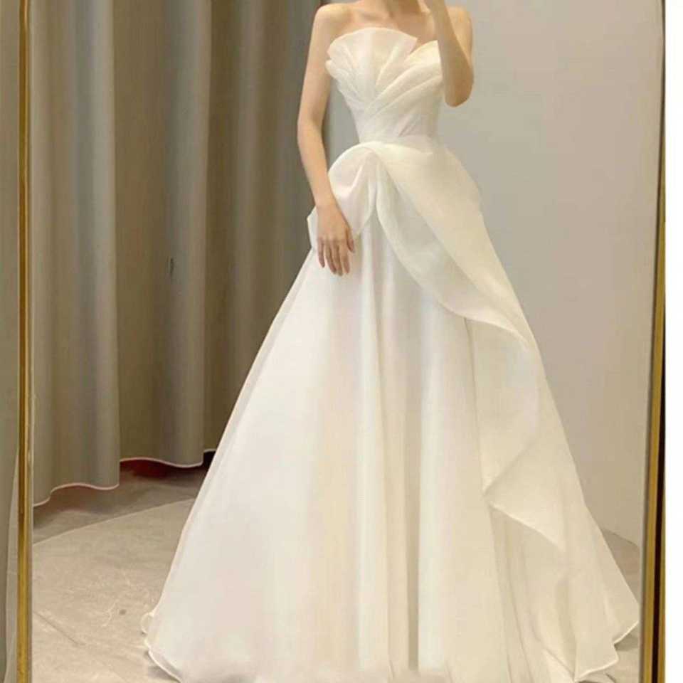 2025 New Women White Wedding Dresses Strapless Fashion Cheap Bride Dress Vestidos De Novia
