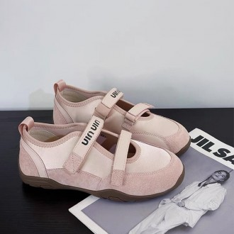 2025 New Women's Apricot Pink Ballerina Velcro Casual Sneakers Height Increasing Mary Jane Shoes by Deokhun