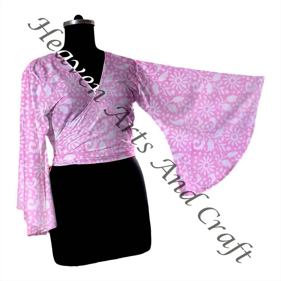 Model Number:Hand Block Print Cotton Tie Tops Bell Sleeves