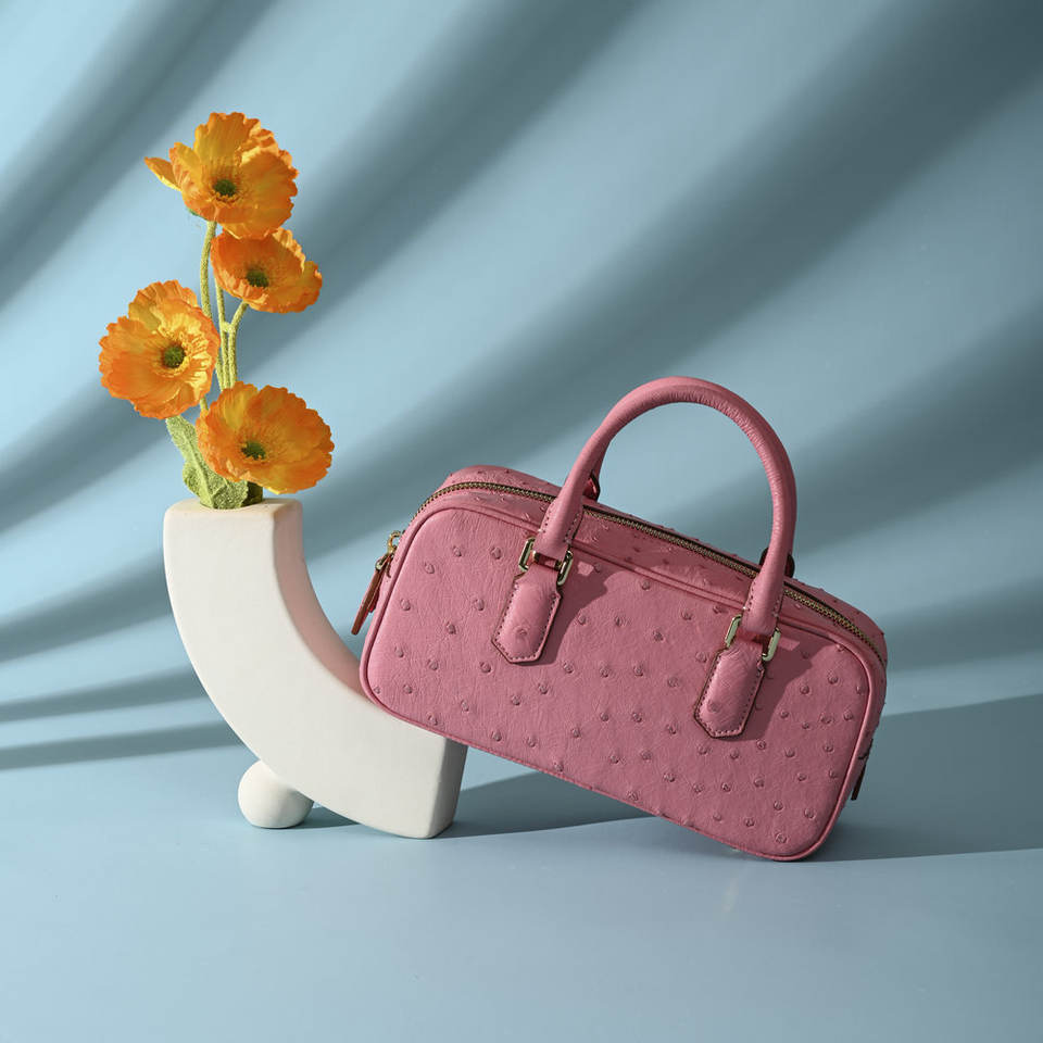 2025 New Women's Ostrich Leather Bag Fashionable Hand-Held Crossbody with Square Pillow Durable Genuine Leather Bag