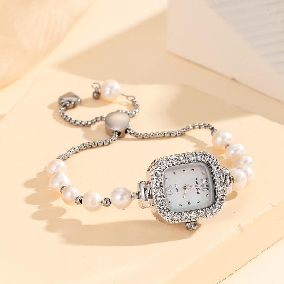 2025 New Women's Watch: Stylish Diamond-Set Square Wristwatch with Zircon-Decorated Long Bracelet Quartz Watch