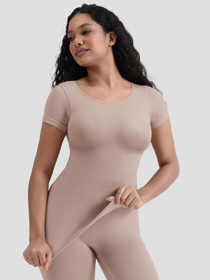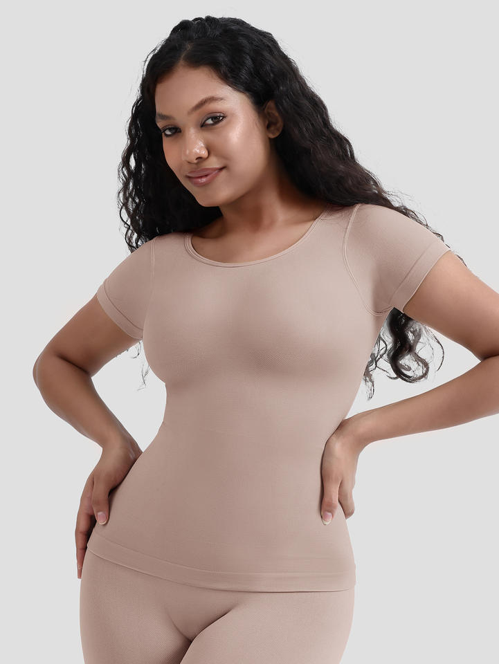 2025 New Women's XL Tummy Controlling T-shirt Breathable Body Shaping Seamless Waist Short Sleeved Tops Made of Polyamide