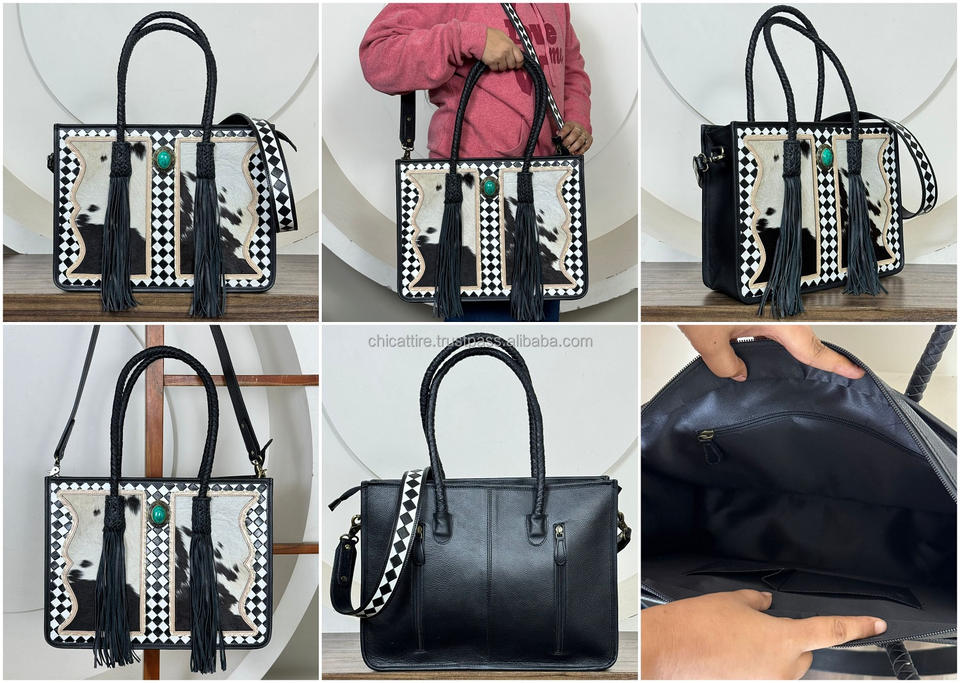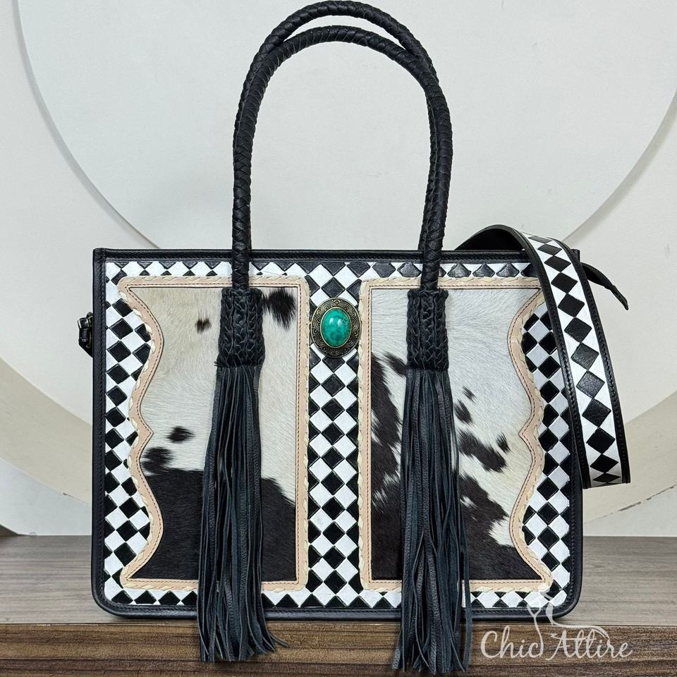 Product name:Hand Tooled Turquoise Stone Checkered Leather Tote Bags
