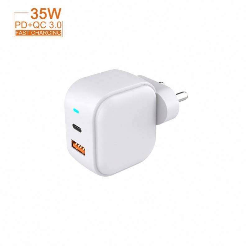 2025 Newest Indian GaN 35W Type C Wall Charger Smart Fast Charger Dual USB C PD Charger