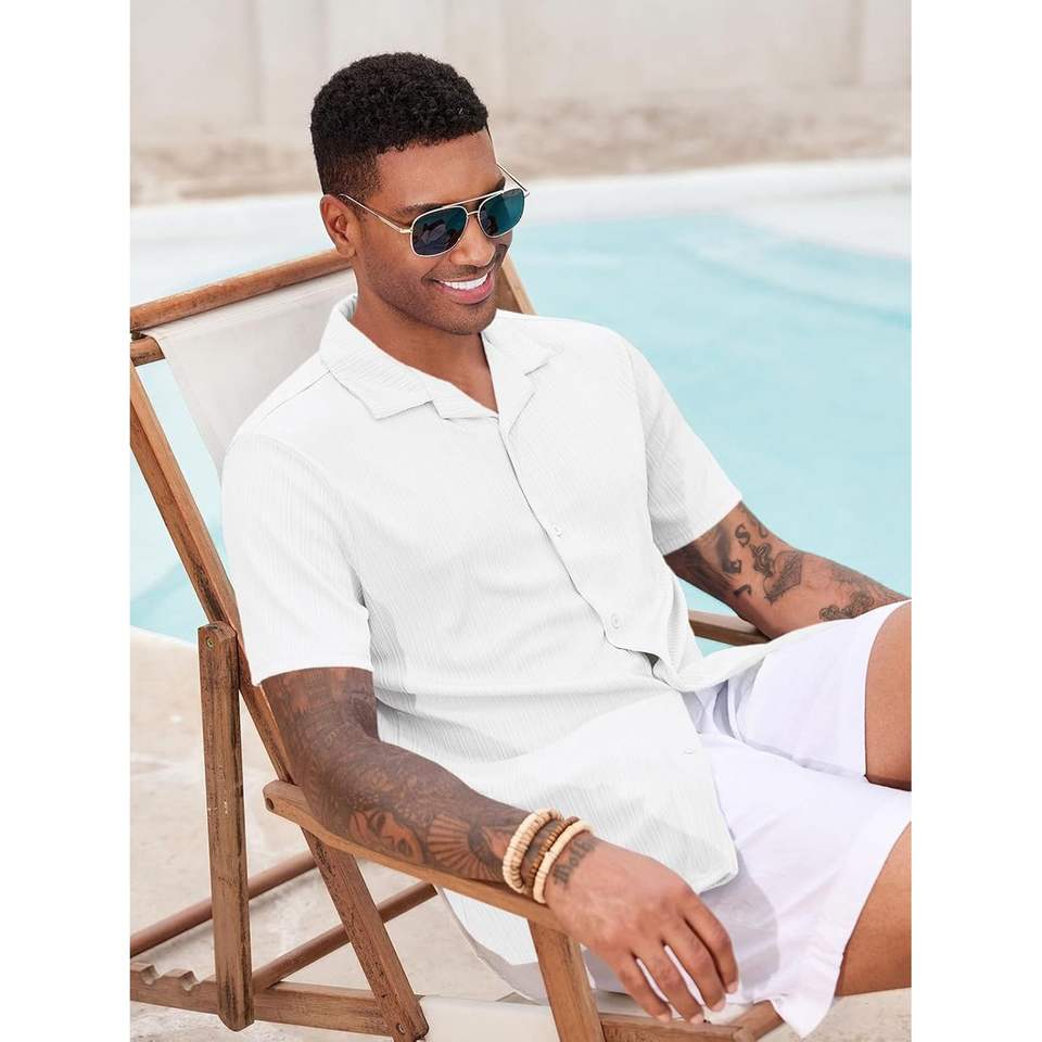 2025 ODM Casual Button Down Floral Shirt for Men Short Sleeve Cuban Collar Woven Textured Summer Beach Stretch Tops