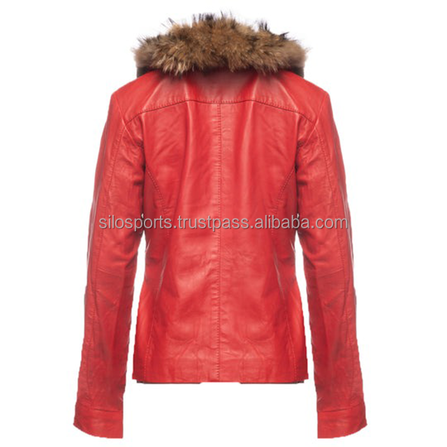 2025 OEM Original Red Genuine Sheep-Skin Leather Winter Coat Women's Low MOQ Heated Fashion Fox Fur Collar Office Lady