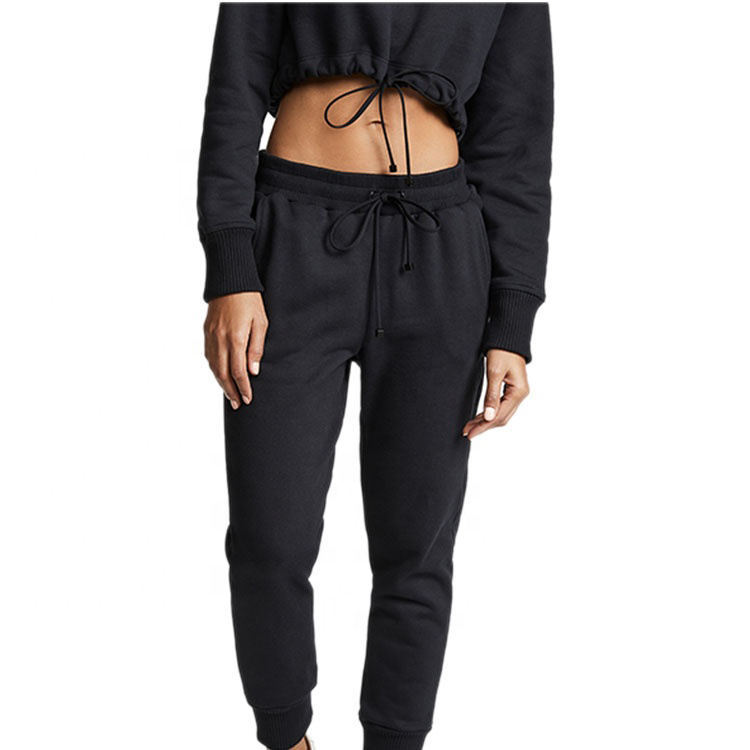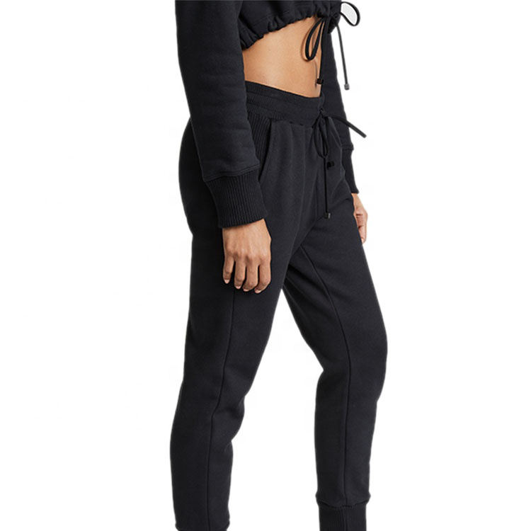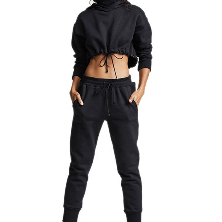 2025 OEM Wholesale Casual Crop Top Hooded Jogger Suit for Women Winter Outdoor Sports Tracksuits with Drawstring Track suit