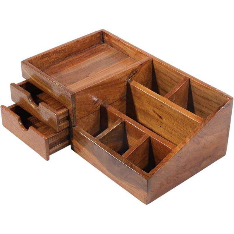 2025 Office School Supply Wooden Stationary Organizer Wholesale New Design Handmade Table Top Wooden Stationary Organizer Box