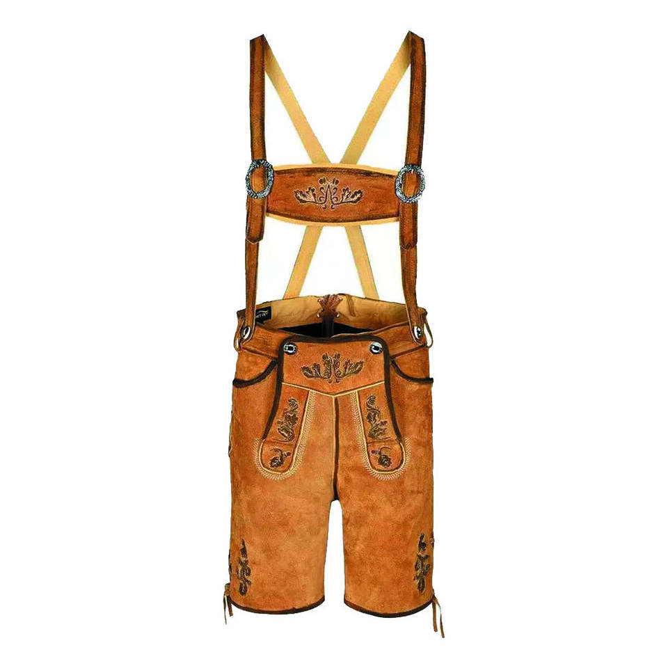 2025 Oktobarfest Men's Lightweight Summer Bavarian High Quality Suede Leather Embroidery Windproof Breathable Regular Fit Kurz