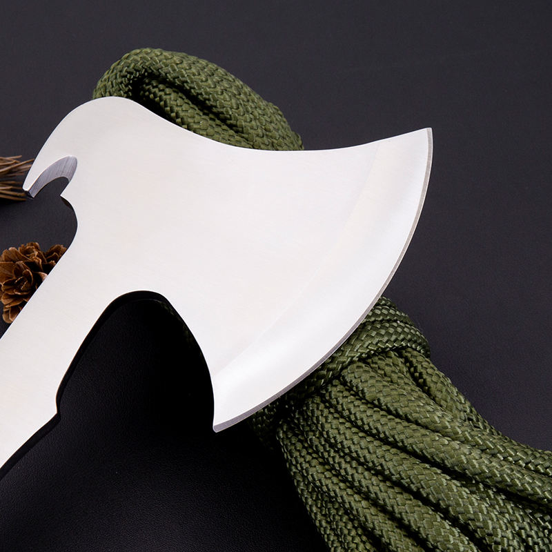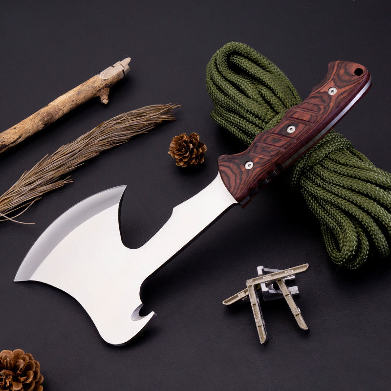2025 Outdoor Pakka Wood Handle Pizza Type Axe Head Camping Tactical Survival Tomahawk Axe Hatchet with Rope Cutter for men