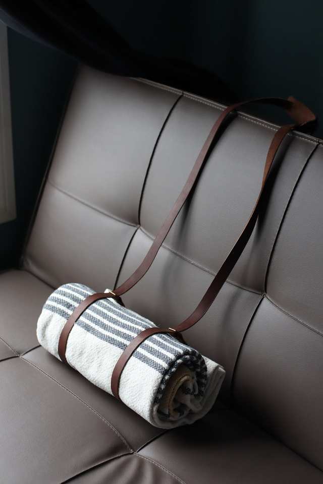 2025 Premium Eco-Friendly Heavy Duty Genuine Leather Blanket Carrier Handmade Strap Portable for Home Hotel OEM for Hospital