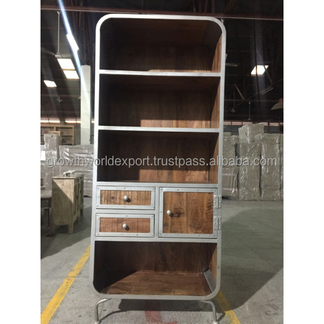 2025 Premium Industrial 2-Drawer Bookshelf Storage Cabinet Top Trending Design for Home Office and Dining Wooden Furniture