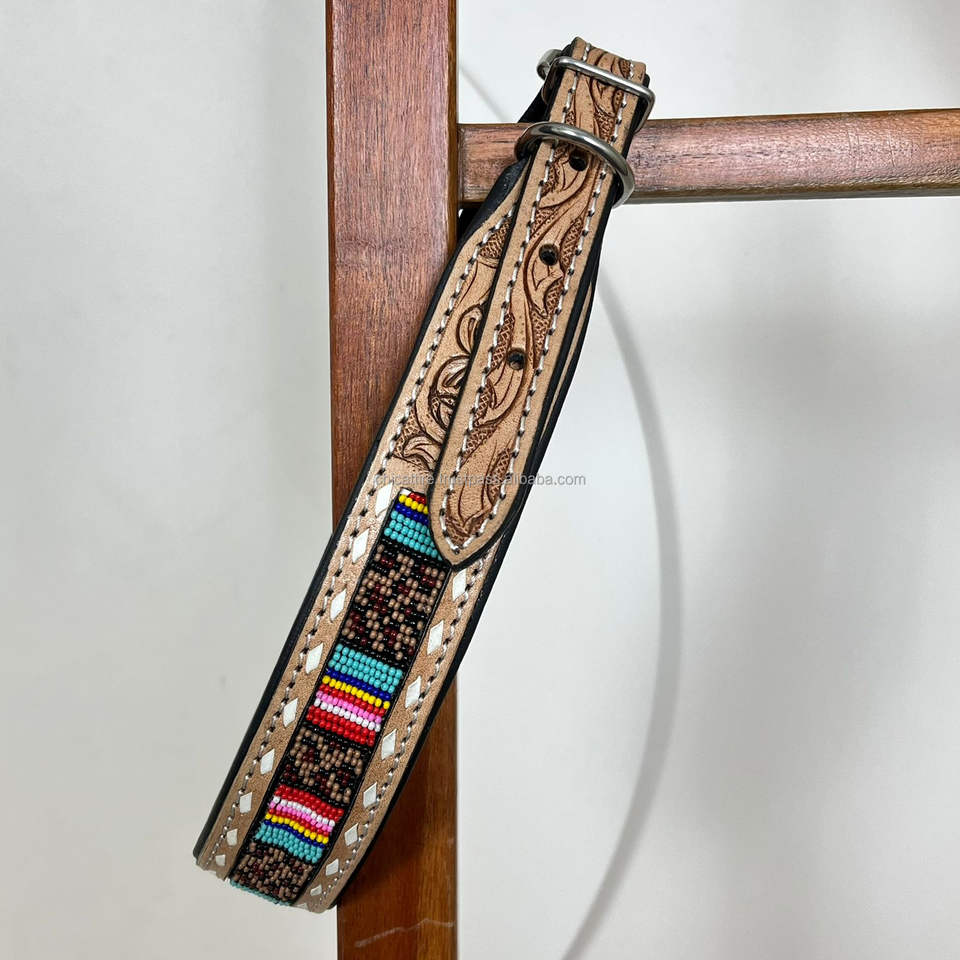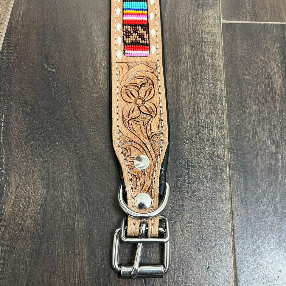 Product name:Hand Tooled Leather Beaded Dog Collar