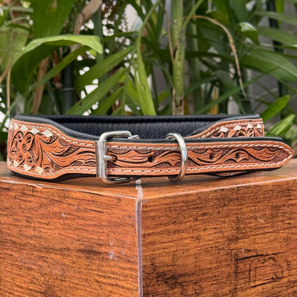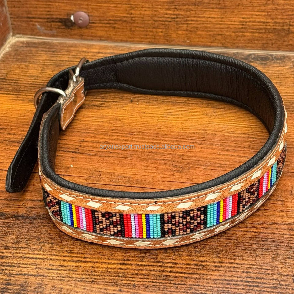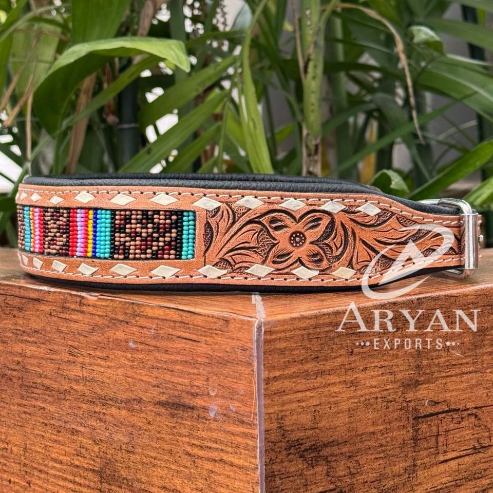 Product Name:Hand Tooled Leather Beaded Dog Collar