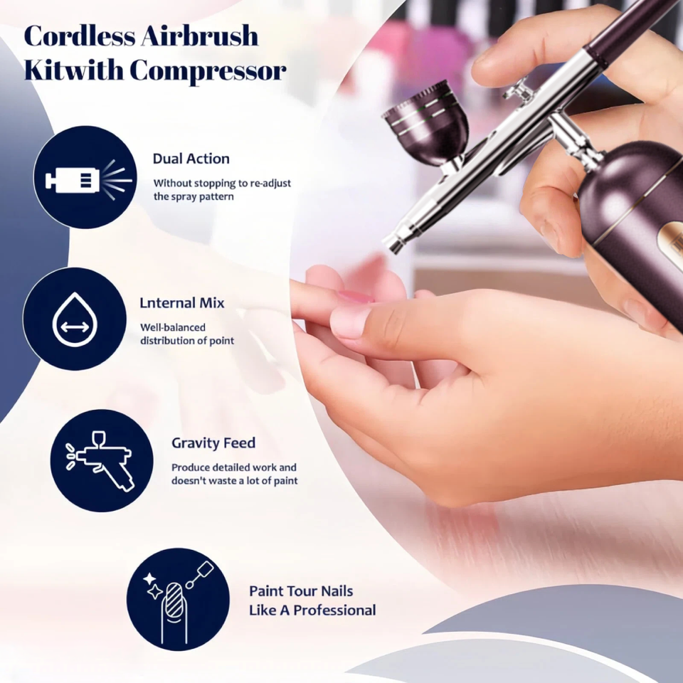 2025 Rechargeable Cordless Airbrush Gun for Professional Makeup Nail Art & Body Art High-Pressure Beauty Tool