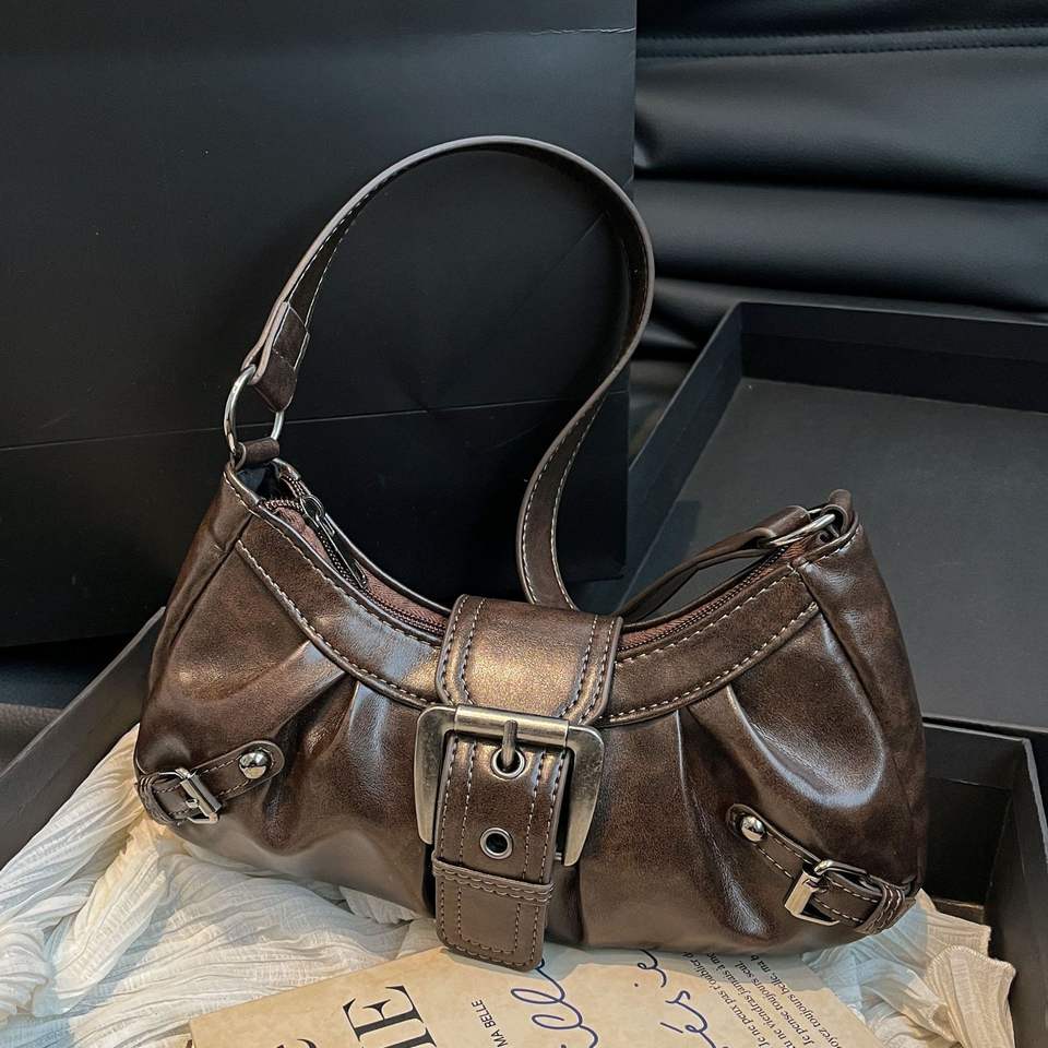 2025 Retro American Wasteland Female Bag Versatile One-Shoulder Underarm Motorcycle Bag Niche Design for Baguette Bag for Ladies