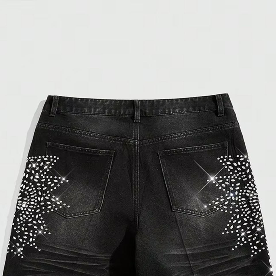 2025 Rhinestone Denim Shorts for Men Custom Color And Size Hip Hop Retro Black Baggy Short Cheap Price