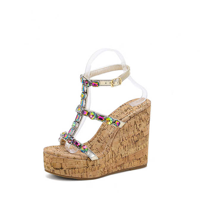 2025 Sandals Open Toe Ladies Color Rhinestone Wedges Women Shoes Platform High Heels