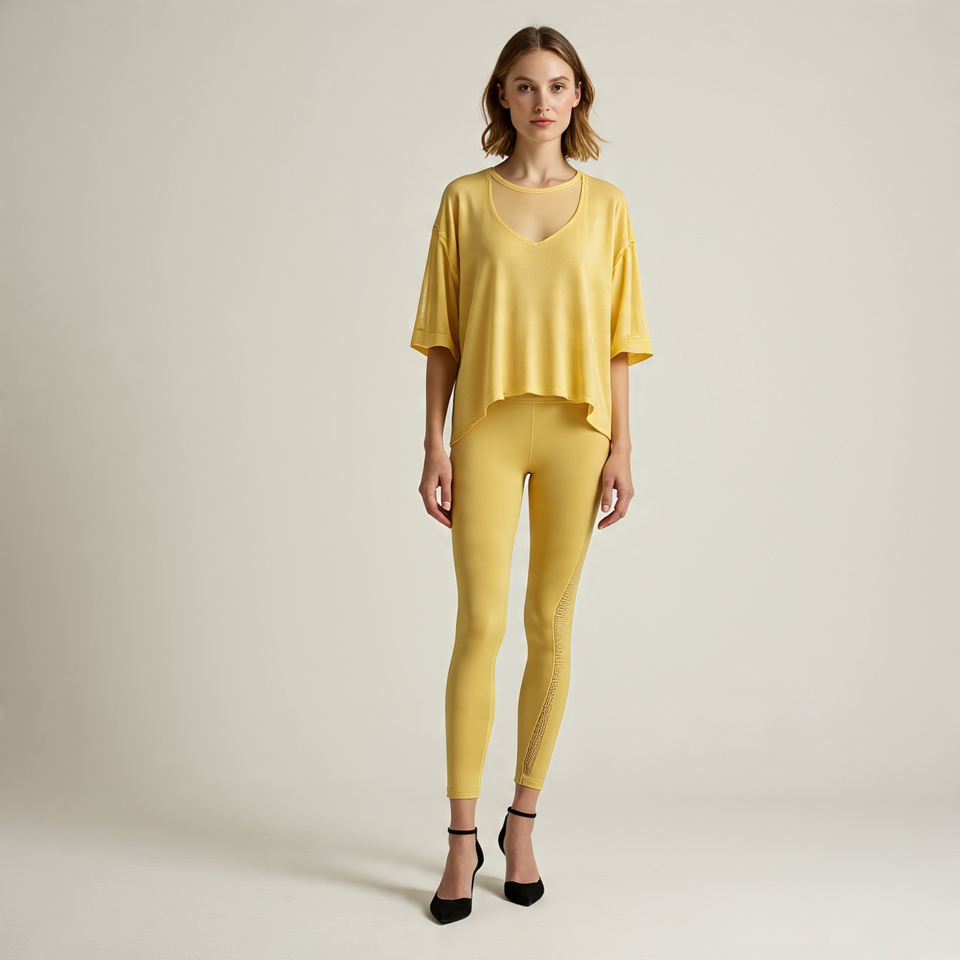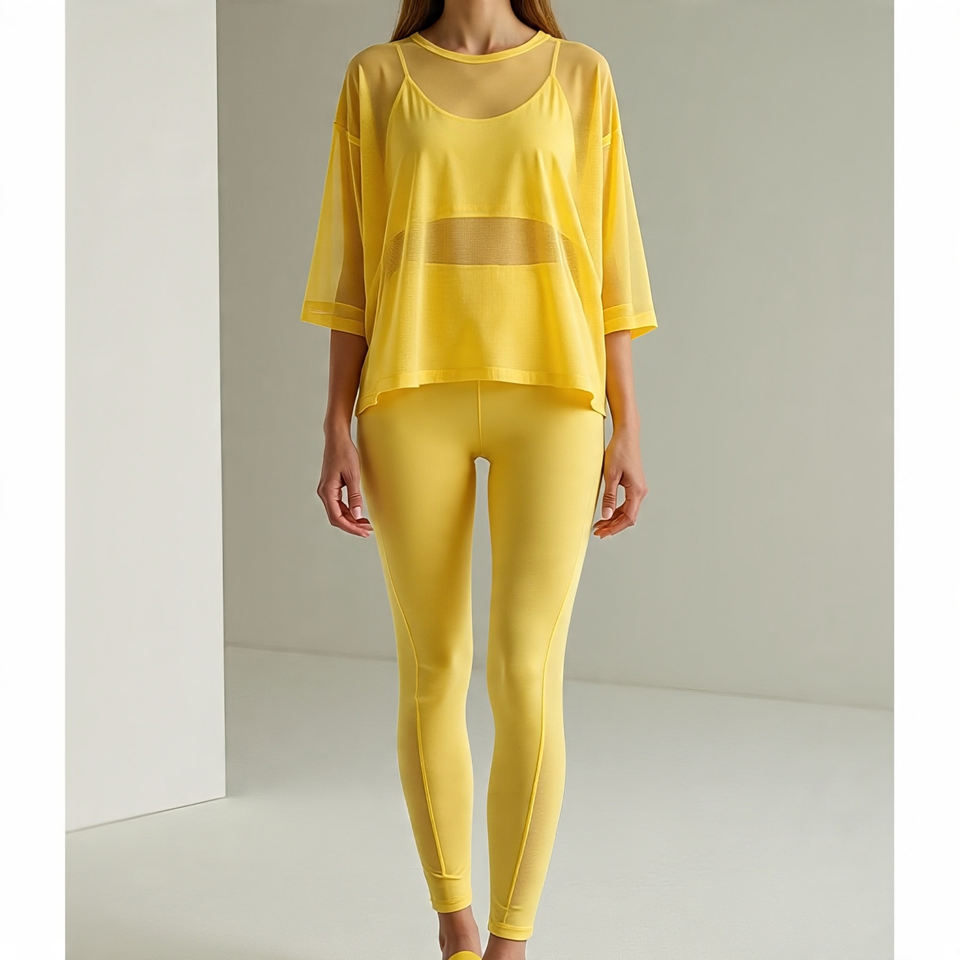 Yoga Fitness Wear Sheer Mesh Two Piece Sets