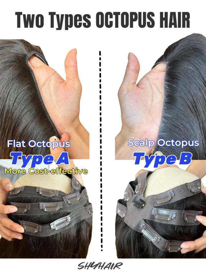 2025 Shy Hair New Design Russia Hair 10D Octopus Clip Invisible in Hair Extension Straight 40% Density for Women