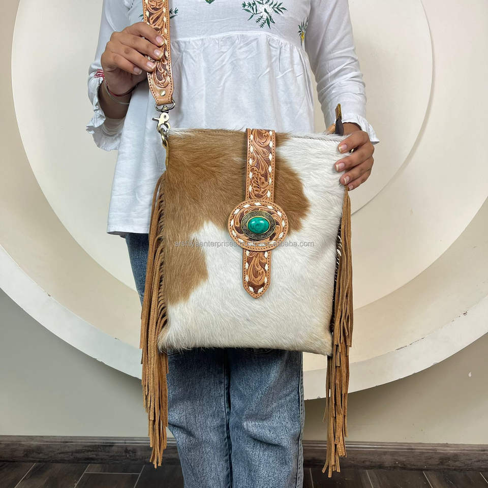 2025 Simple & Stylish Crossbody Bag Large Capacity Tooled Cowhide Leather Crossbody Bag Turquoise Stone Shoulder Versatile Bags