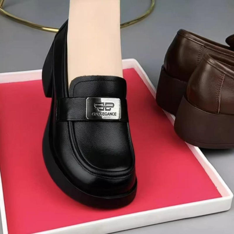 2025 Spring Autumn Collection Genuine Cowhide Leather Women's Loafers Thick Heel Soft Sole Top Layer Small Leather Shoes Flats