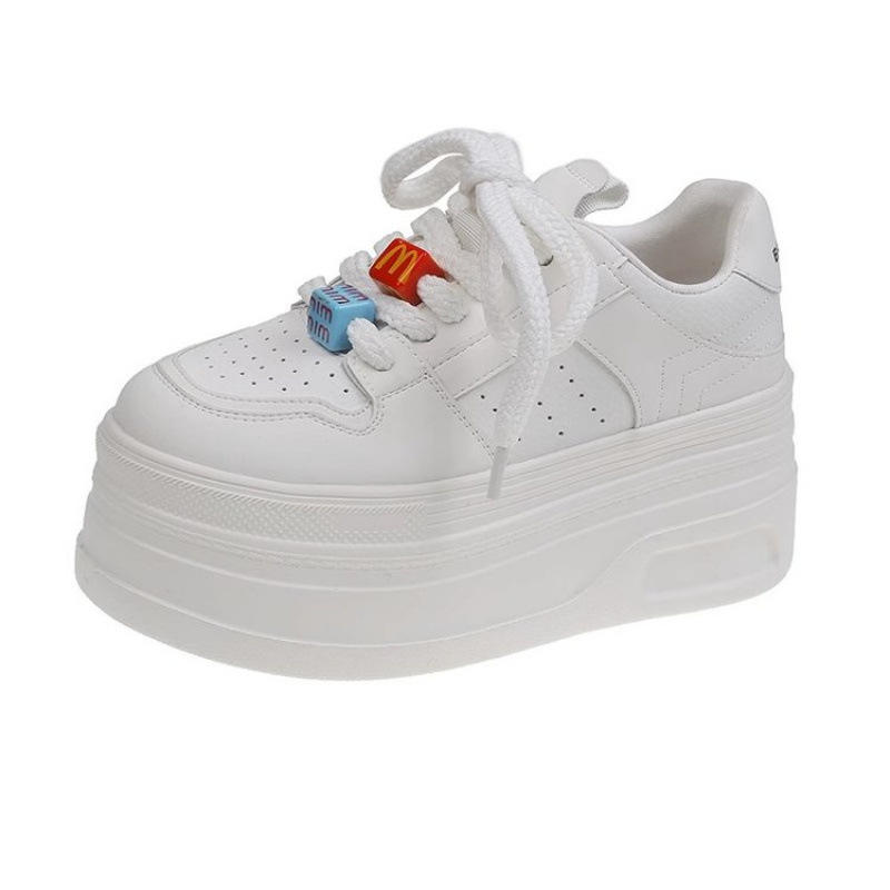 2025 Spring Collection Women's Genuine Leather 8cm Thick White Shoes Versatile Casual Sports Height-Increasing Platform Shoes