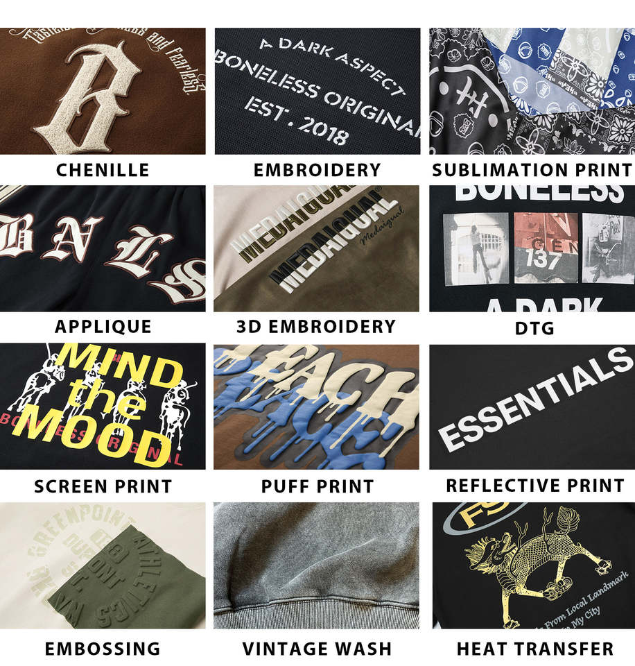 Digital Printing, Heat-Transfer Printing, Puff Printing, Silk Screen Printing