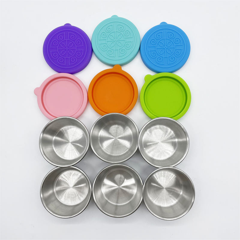 2025 Stainless Steel Small Condiment Container With Colorful Silicone Lid Leakproof Salad Dressing Container for Kids