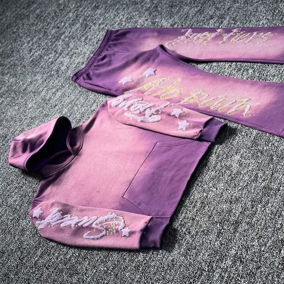 2025 Street Wear Vintage Heavyweight Oversized Puff Print Cut Vintage Dyed Bell Bottoms Men's Tracksuit OEM Serviced