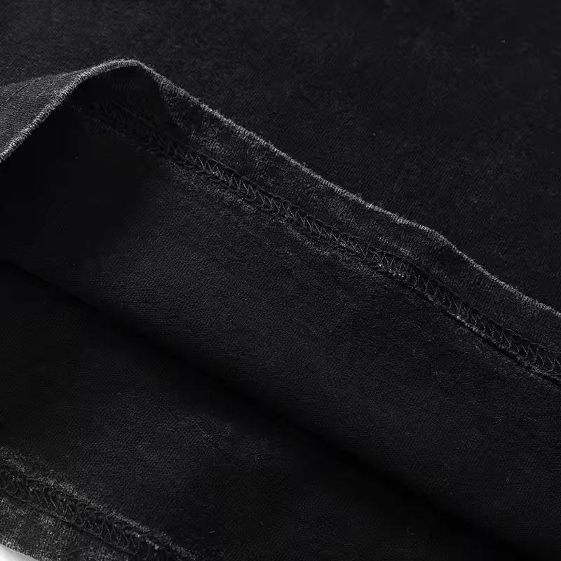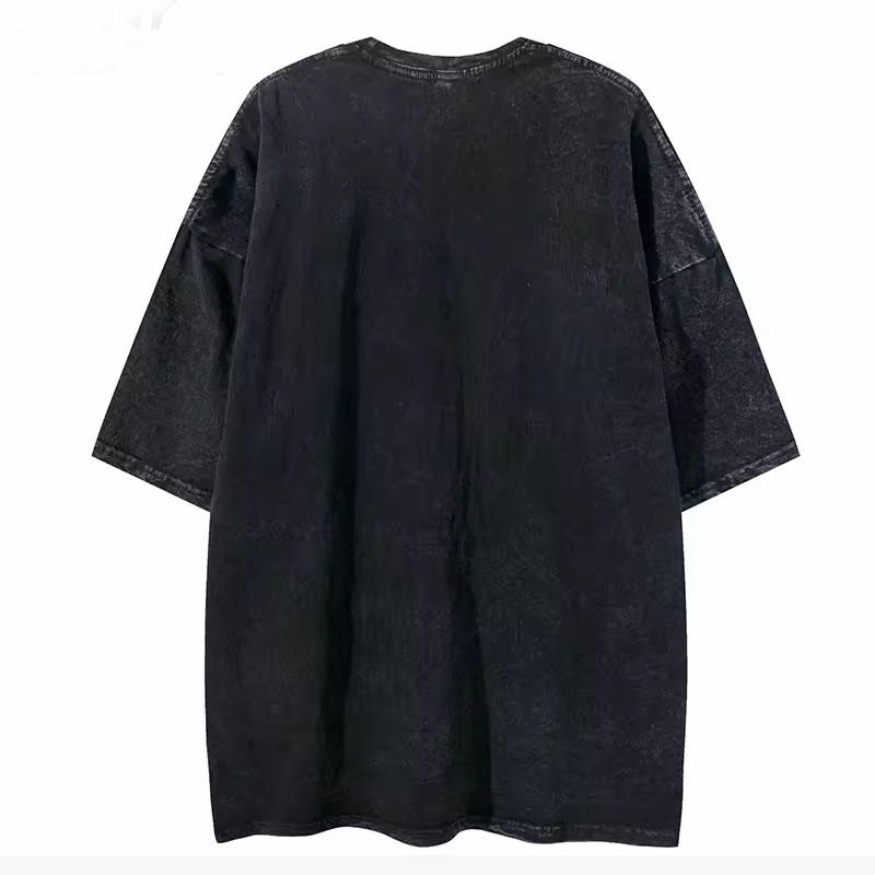 2025 Streetwear Retro Washed Black Tshirt Castle Graphic Vintage Print Hip Hop Loose T Shirt Men Cotton T-Shirt Hipster Tops Tee