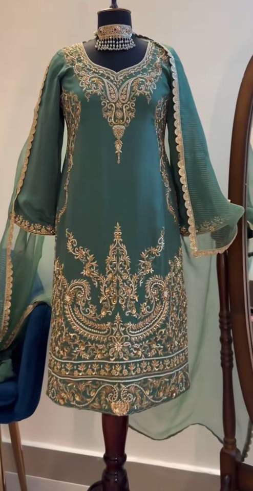 2025@Stylish Indian/Pakistani Long Kurta, Pant & Dupatta Dress with Embellished Dabka, Pearls, Stone work for Party-Wear/Wedding