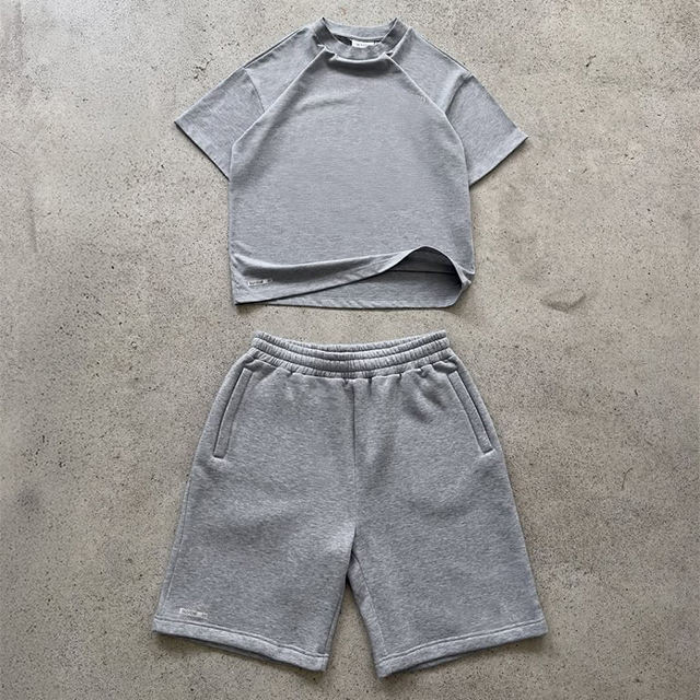 2025 Summer 100% Cotton Streetwear Custom Casual Loose Embrodierd Men T Shirt Sets Sports Two Piece T Shirt and Short Sets