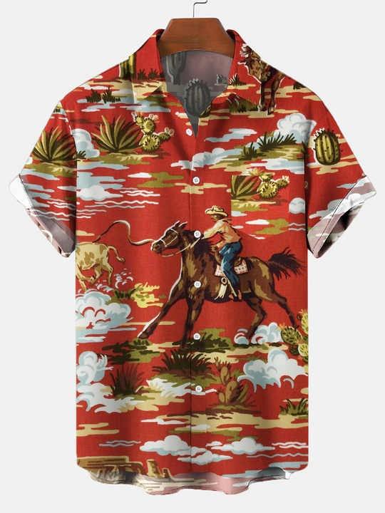 2025 Summer Custom Vintage Western Horse Printed Cowboy Short Sleeve T Shirts Pour Hommes