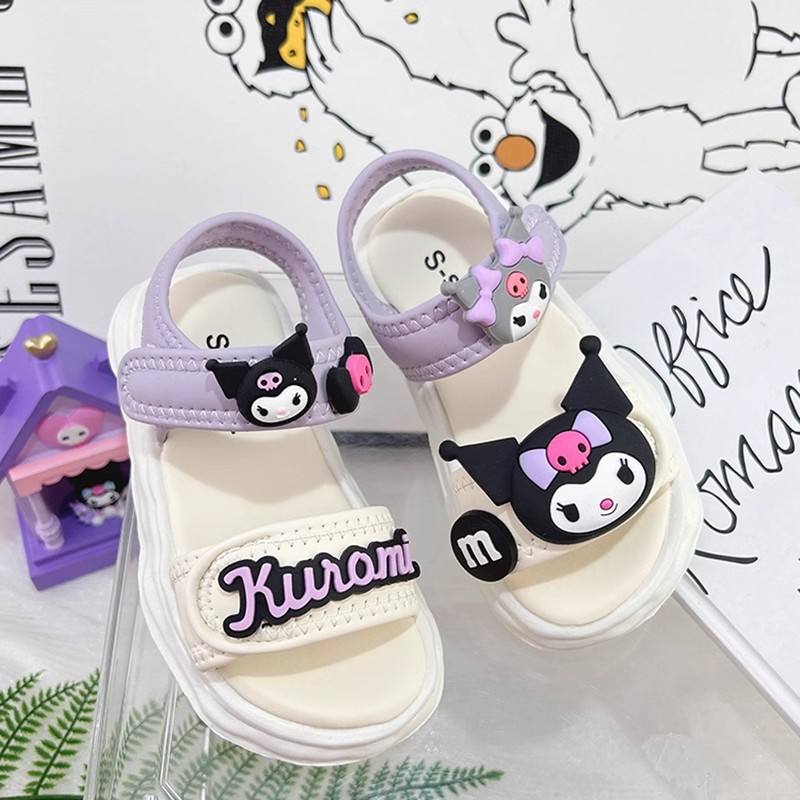2025 Summer Girls Cartoon Princess Sandals Soft-sole Velcro Closure Purple Stylish Beach Shoes for Kids Babies