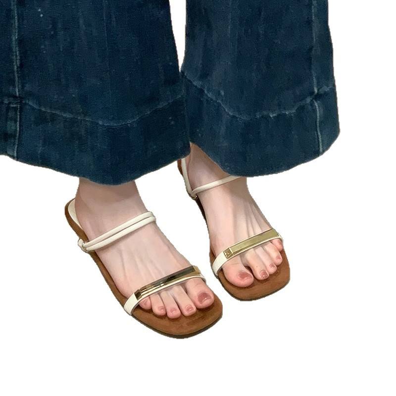 2025 Summer Gladiator Women Sandals Fashion Elegant Narrow Band Clip Toe Shoes Ladies Comfort Flats Beach Slippers
