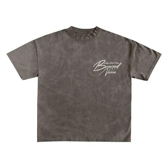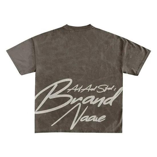 2025 Summer Men 250GSM Knitted Breathable O-Neck Wide Short Sleeve Logo Men's Printed Vintage Acid Wash T Shirt Set