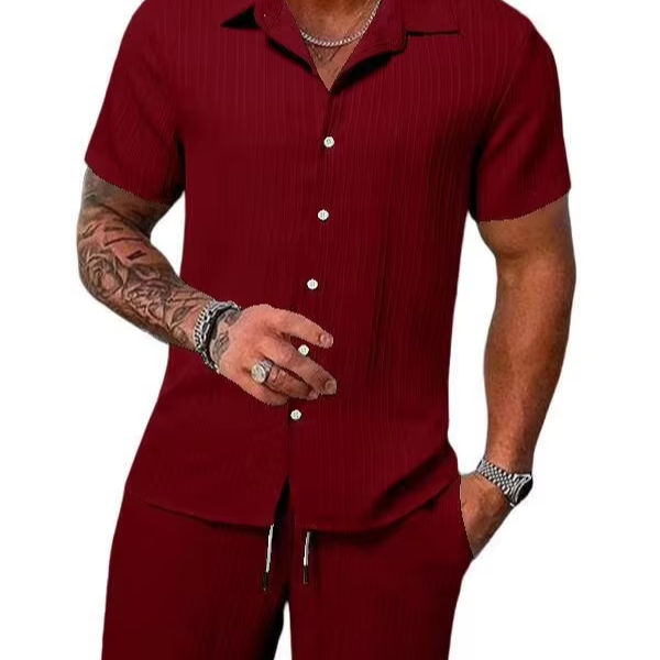 2025 Summer Men's Casual Loose-Fitting Short-Sleeved Shorts Beach Suit Shirt Breathable and Comfortable Shorts