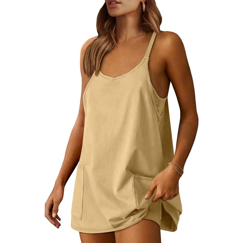 2025 Summer Mini Romper Dress Workout Tennis Active Sports Athleisure Outfits Built in Shorts Trendy Vacation Black Medium