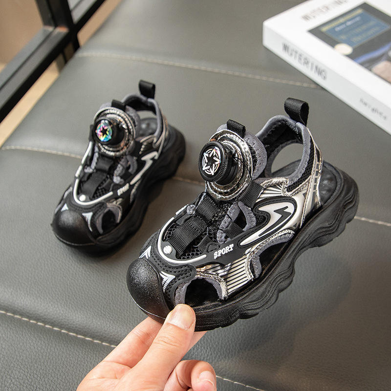 2025 Summer New Boys' Baotou Sandals Hollow Breathable Sports Beach Shoes for Large Children and Babies