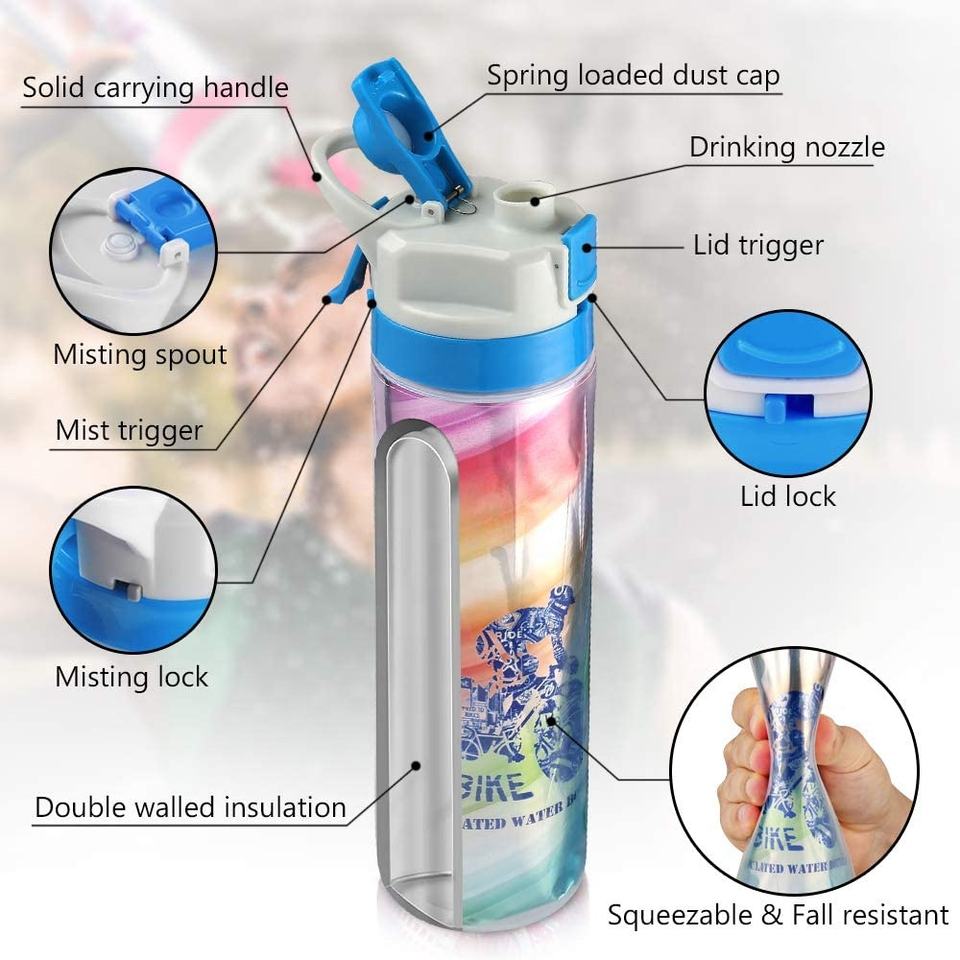 2025 Summer New Design Sport 2-in-1 650ml Eco-Friendly Water Bottle Mist Spray Feature Durable Plastic Drinkware for Hiking