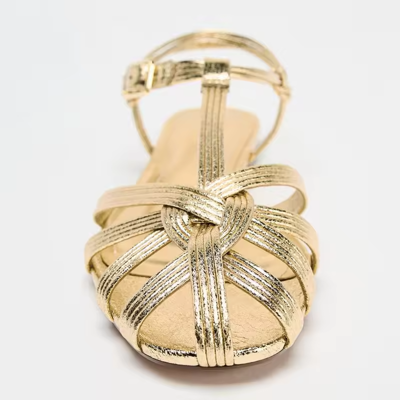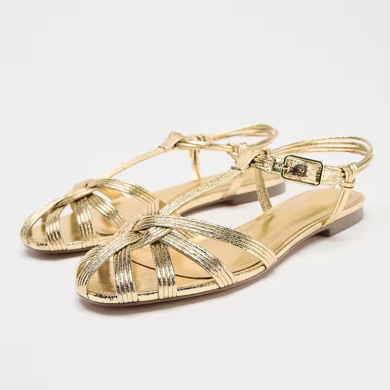 2025 Summer New Fashion Casual Gold Lightweight Platform Lace-up One Button Strap Women's Flat Sandals Beach Shoes