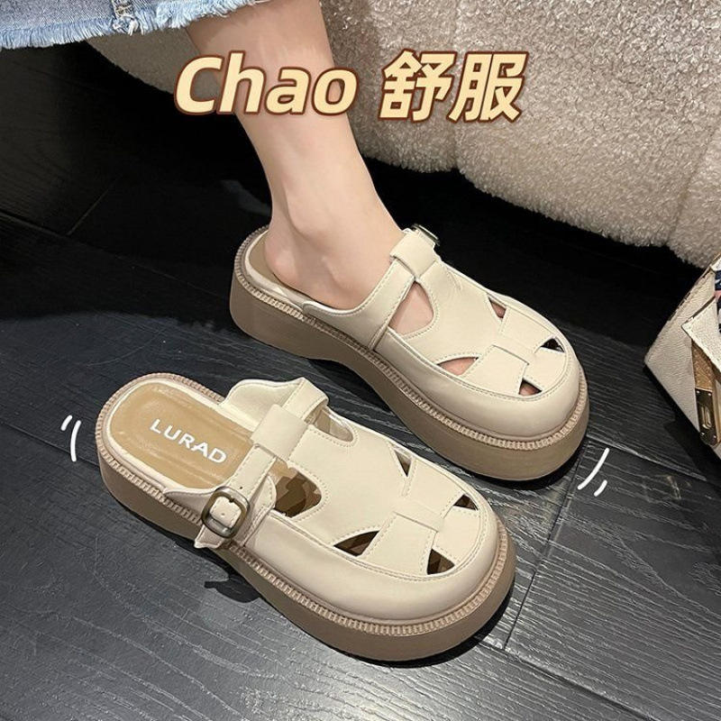 2025 Summer New High-End Muller Women's Gladiator Roman Sandals Xishi Velvet Upper Split Toes Thick-Soled Baotou Flat