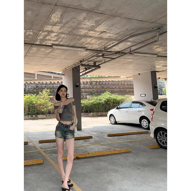 2025 Summer New High Waist Hip Straight Hot Pants for Women Hot Girl Slim Fit Versatile Old Denim Shorts Casual Vintage Y2K