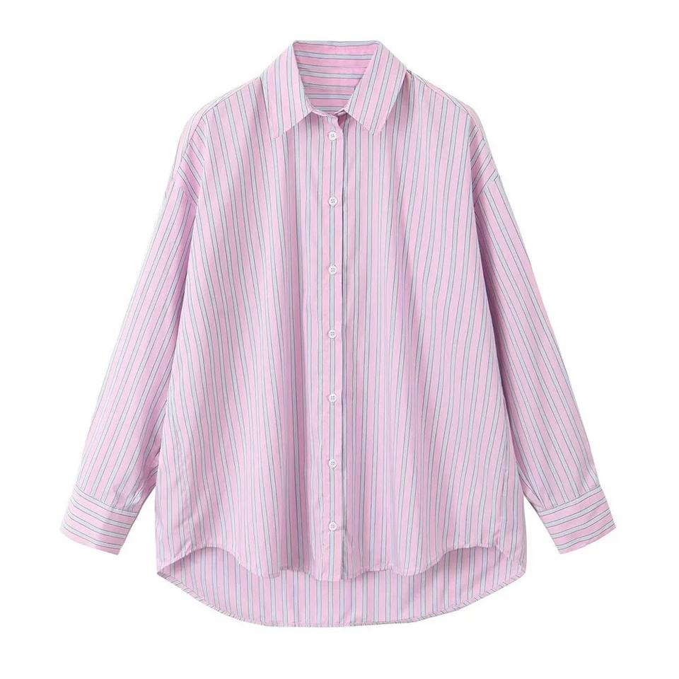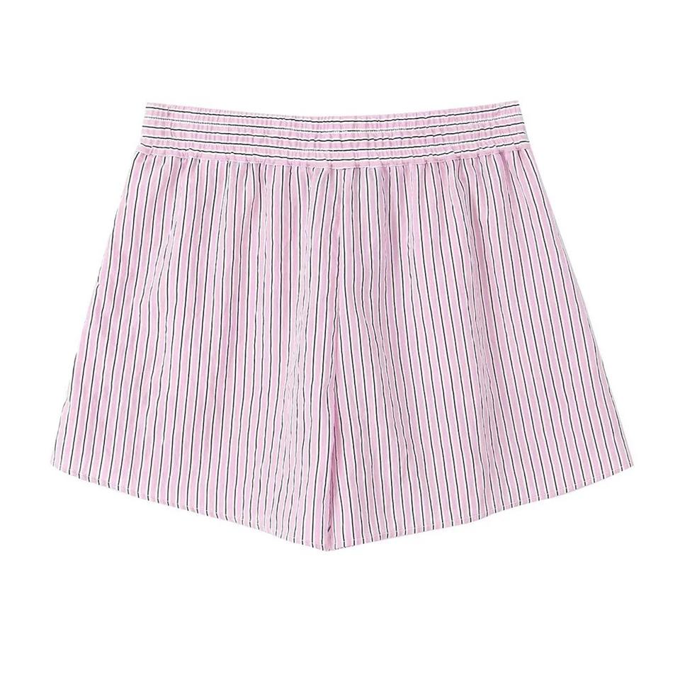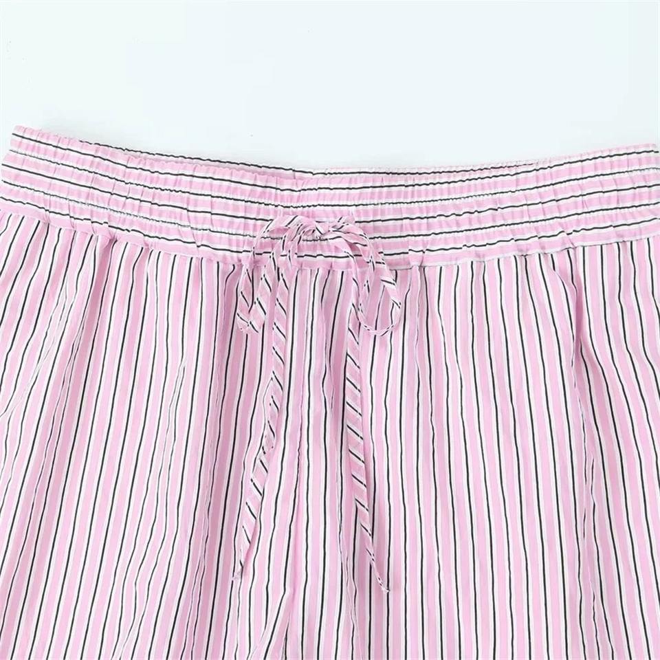 2025 Summer New Product Women's Casual Single Breasted Long Sleeved Collar Shirt Striped High Waisted Shorts Set