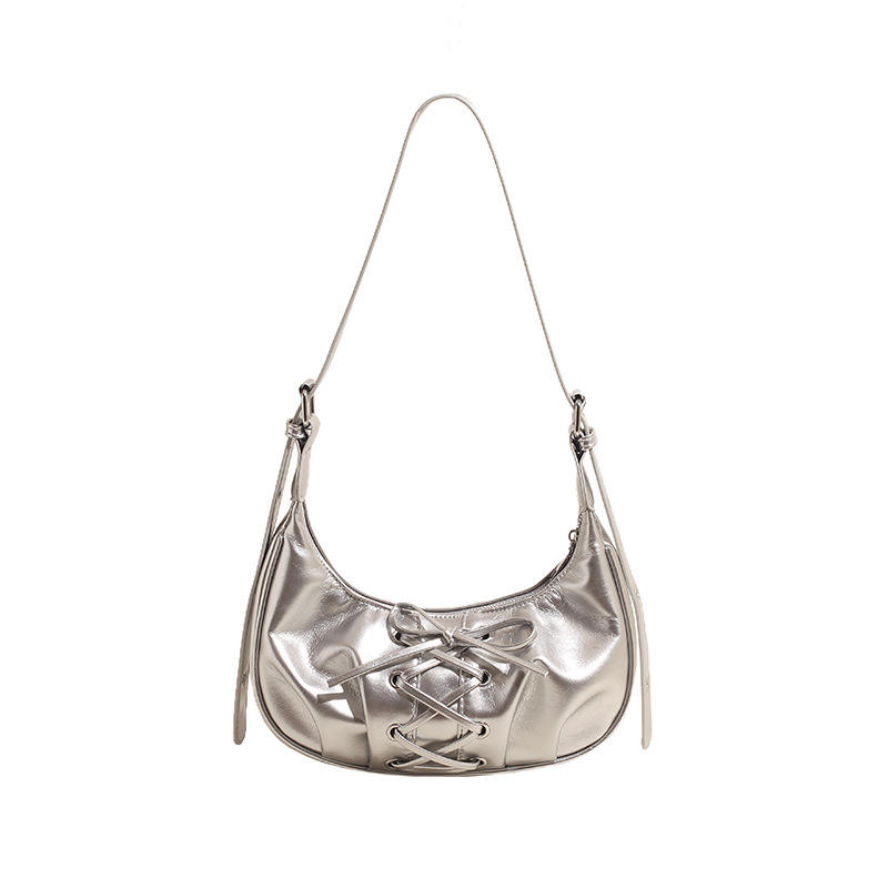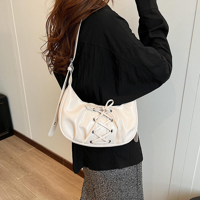 2025 Summer New Style Female Crossbody Bag Popular Bow Dumpling Design Zip Closure Single Shoulder Underarm Polyester PU Lining